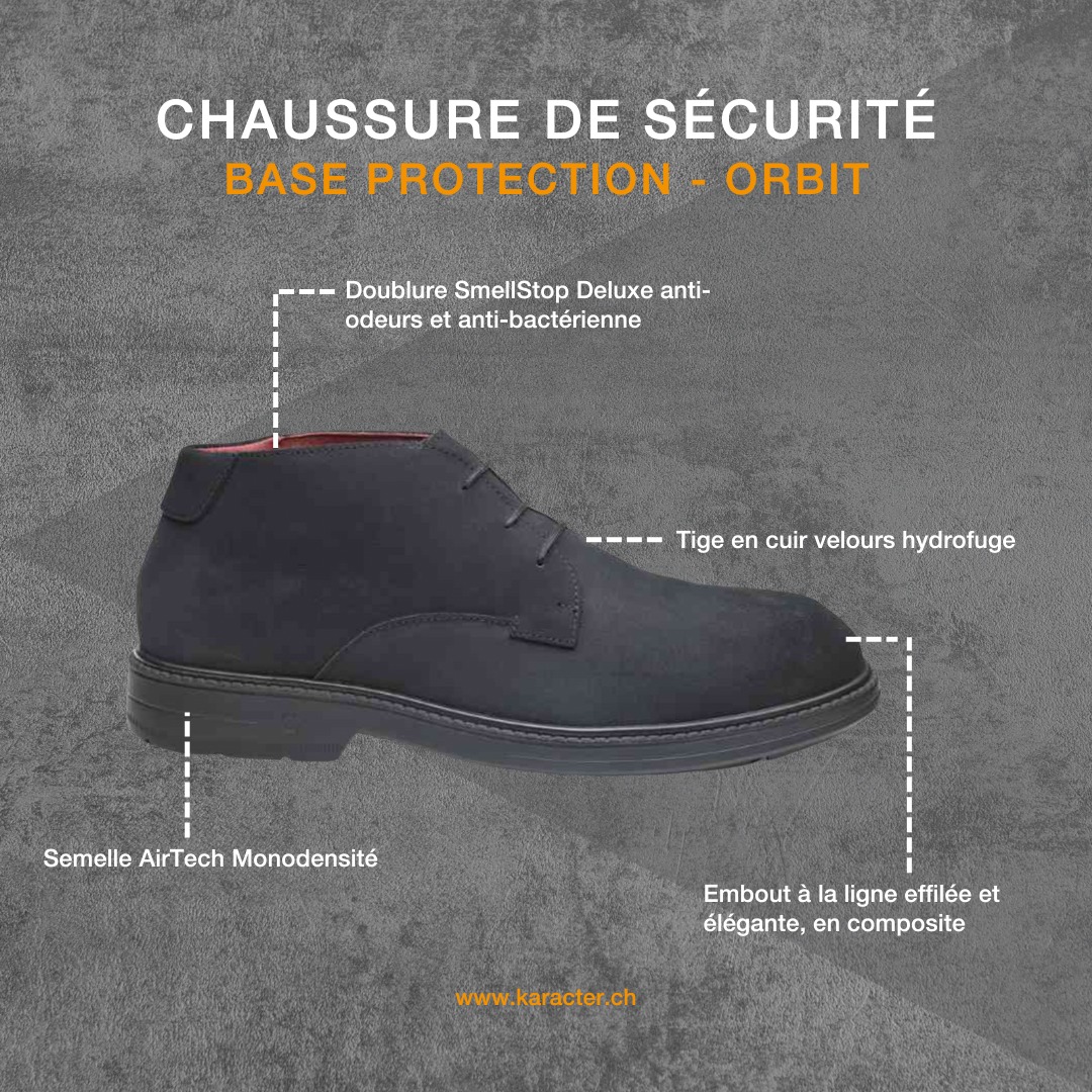 Orbit est une chaussure de ville très discrète et élégante, normée S3, ESD, SRC, avec une coque composite.